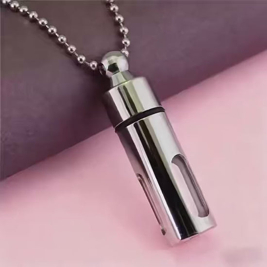 Our cremation necklace is made from 316L Titanium Steel - Lighter than normal stainless steel, more comfortable, never rust or tarnish. Smooth hand polished surface offering comfortable wearing experience. The interior of the pendant is empty and can hold a small amount of ash, a strand of hair, soil or sand.