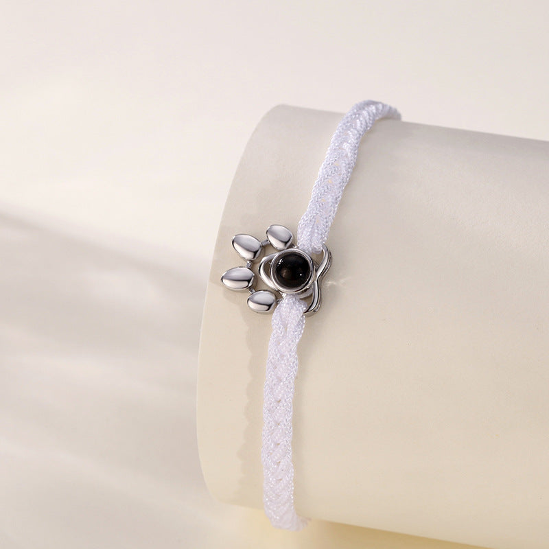 Personalized Photo Projection Bracelet Dog Paw Colorful Braided Rope - P009
